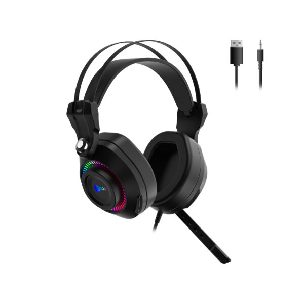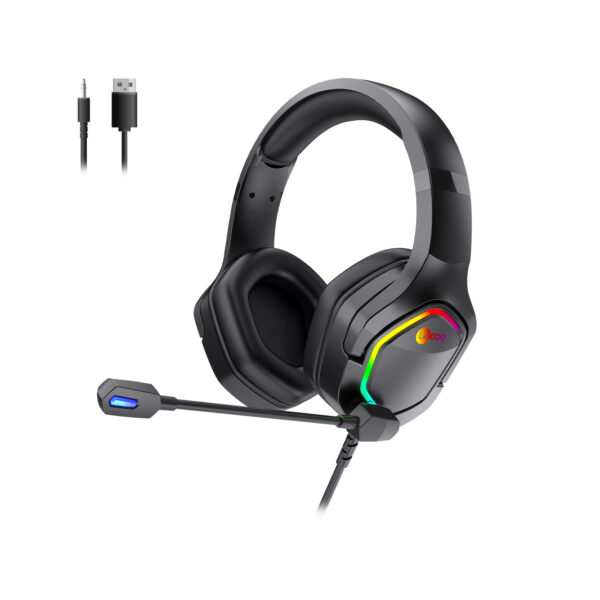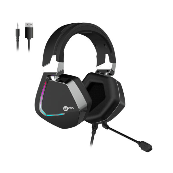 Lecoo HT402 USB + 3.5mm Jack Kablolu RGB LED Aydınlatmalı Çıkartılabilir Mikrofonlu Kulak Üstü Gaming Kulaklık Siyah