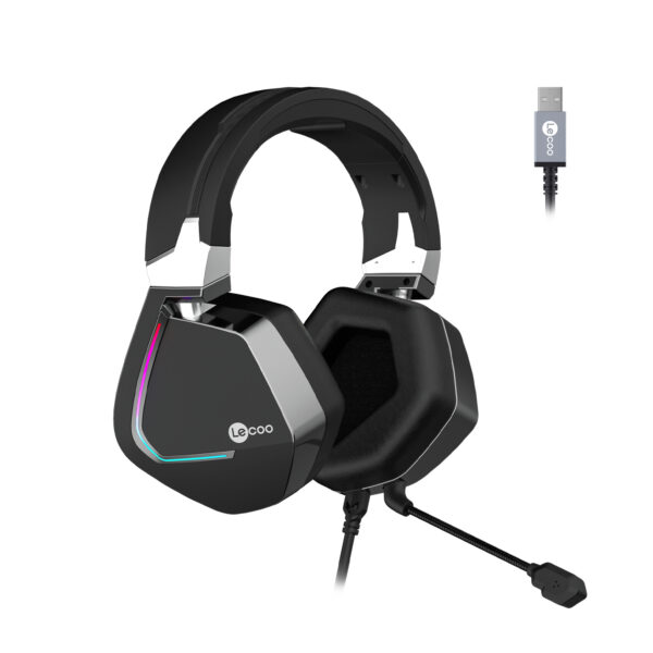 Lecoo HT402 USB Kablolu Surround 7.1 RGB LED Aydınlatmalı Çıkartılabilir Mikrofonlu Kulak Üstü Gaming Kulaklık Siyah