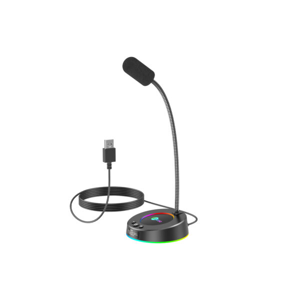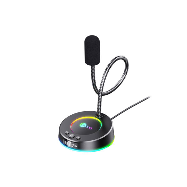 Lecoo MC01S USB Kablolu RGB Aydınlatmalı Multimedya 360° Bükülebilir Masaüstü Mikrofon Siyah
