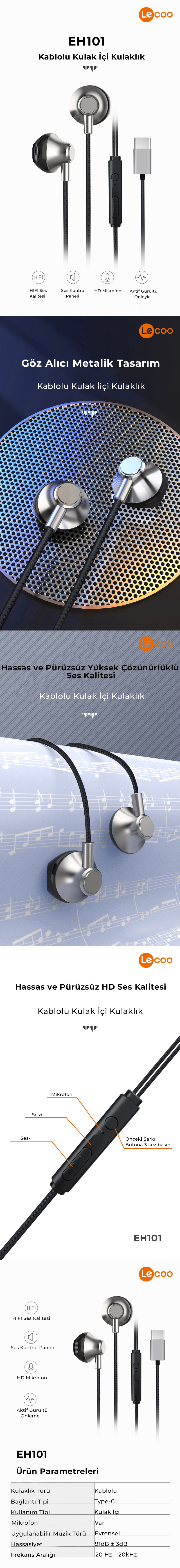 Sağlam kablo yapısı ile Lecoo EH101, kopma, yıpranma ve aşınmalara karşı oldukça dayanıklıdır. Uzun ömürlü kullanım için tasarlandı.