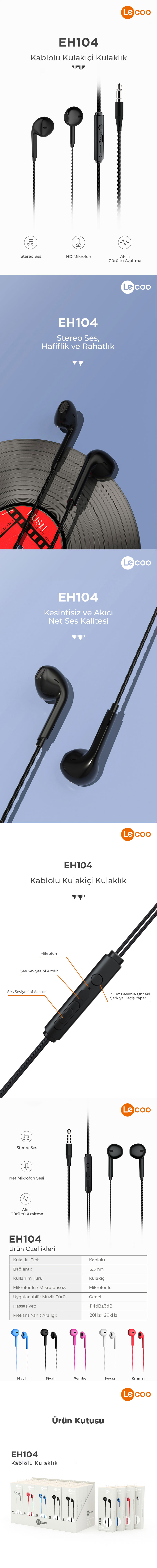 Üzerinde bulunan kaydırmalı kontrol tuşu ile tek hareketle ses ayarını yapabilir, müzik ve telefon aramaları arasında kolayca geçiş yapabilirsiniz. Lecoo EH104 ile her zaman bağlantıda kalın!