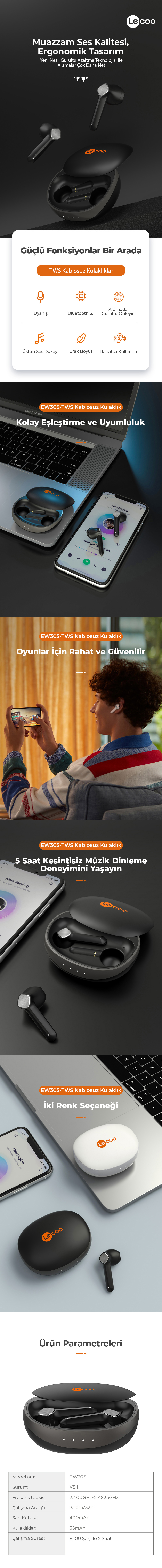Ergonomik tasarımı sayesinde günlük egzersizlerinizi ve aktivitelerinizi artık daha rahat yapabilirsiniz. Kompakt ve şık tasarımı ile Lecoo EW305, kulaklarınıza mükemmel uyum sağlar ve uzun süreli kullanımlarda bile rahatlık sunar.