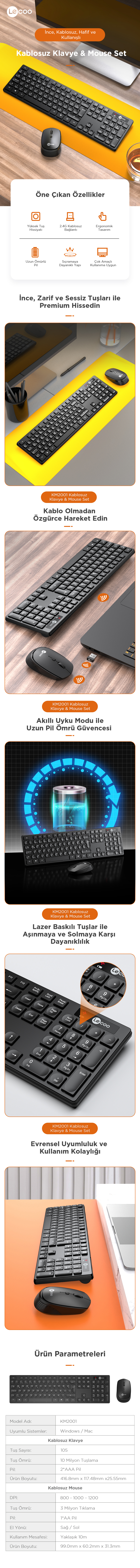Windows veya Mac işletim sistemleriyle uyumlu olan set, her türlü bilgisayar ortamında sorunsuzca çalışır. Klavye ve Mouse’u kullanmaya başlamak için sadece USB alıcısını takmanız yeterlidir.